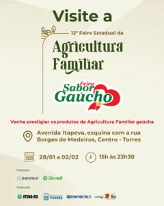 A iniciativa é uma realização da FETAG-RS, da Prefeitura de Torres, da Emater/RS-Ascar e da Secretaria de Desenvolvimento Rural do Governo do Estado do Rio Grande do Sul. O evento conta com o patrocínio do Banrisul e do Sicredi.