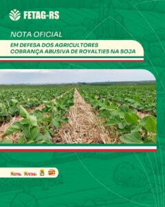 A FETAG-RS vem a público manifestar-se, com transparência e responsabilidade, sobre a atuação do movimento sindical na defesa dos agricultores gaúchos diante da cobrança de royalties da soja e da chamada “multa na moega”, valor considerado desproporcional e injusto, que tem pesado ainda mais sobre quem produz. Desde o início, a FETAG-RS e os Sindicatos dos Trabalhadores Rurais sempre tiveram clareza de que esta é uma grande disputa, marcada pelo enorme poder econômico da Monsanto, hoje Bayer, que utiliza todos os recursos judiciais possíveis para prolongar processos e sustentar cobranças que entendemos como altamente questionáveis. Mesmo assim, a Federação e os Sindicatos seguem firmes, atuando de forma técnica, profissional e com respaldo jurídico.