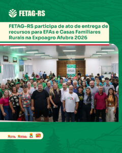 Para a 1ª Secretária e Coordenadora de Juventude Rural e Educação do Campo da FETAG-RS, Camila Rode, a destinação dos recursos representa um avanço importante para a juventude rural. “Essa contemplação é fruto de um trabalho de articulação e reforça a importância de investir na educação do campo. As EFAs e as Casas Familiares Rurais têm um papel fundamental na formação dos jovens, contribuindo para que eles permaneçam no meio rural com mais oportunidades, renda e qualidade de vida”, destacou.