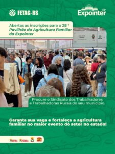 A Fetag-RS informa que já estão abertas as inscrições para empreendimentos interessados em participar do Pavilhão da Agricultura Familiar durante a Expointer 2026.